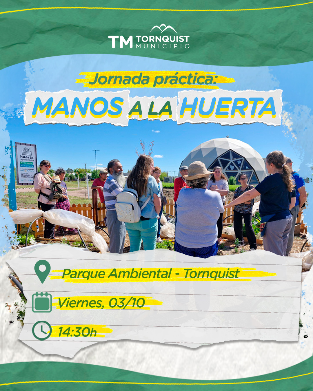 Este viernes 3 de octubre, tendrá lugar una nueva jornada sobre HuertaAgroecológica, impulsada por la Subsecretaría de Ambiente y Desarrollo Sostenible de Tornquist Municipio.