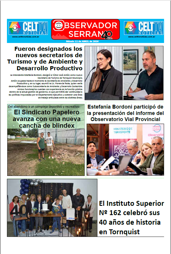 © 2020 OBSERVADOR SERRANO - El informativo gráfico y digital del distrito de Tornquist Moreno 35 - Tornquist - Pcia. de Bs. As.