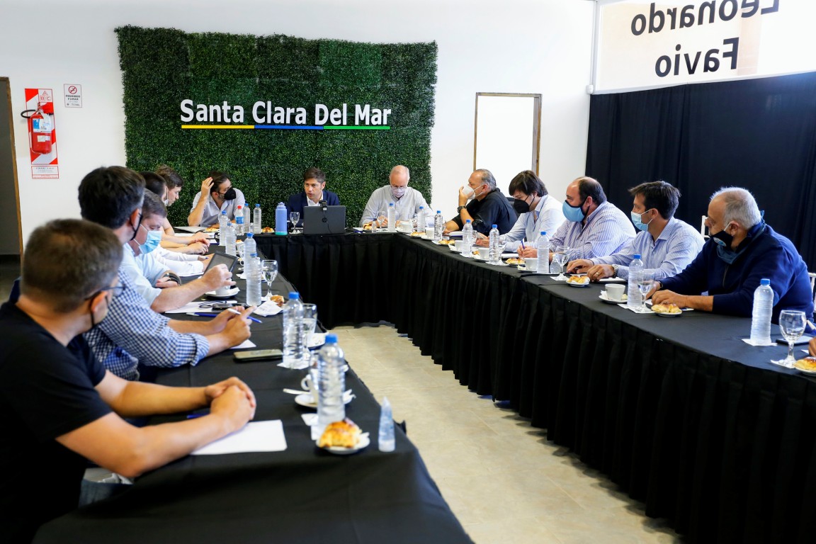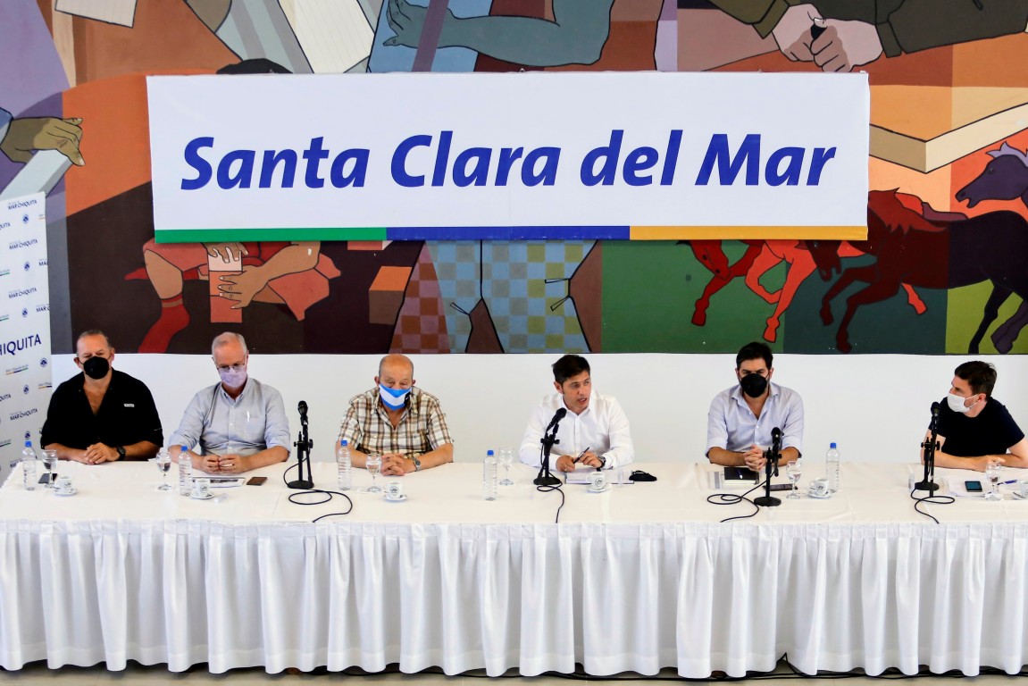 El gobernador Axel Kicillof encabezó hoy una reunión con intendentes y una conferencia de prensa en la que abordó la situación epidemiológica y explicó las medidas adoptadas por el Gobierno provincial para controlar el crecimiento de casos en el territorio bonaerense. En el encuentro, realizado en la localidad de Santa Clara del Mar, partido de Mar Chiquita, el Gobernador estuvo acompañado por el jefe de Gabinete, Carlos Bianco, y los ministros de Salud, Daniel Gollan, Seguridad, Sergio Berni, y Producción, Ciencia e Innovación Tecnológica, Augusto Costa, así como por el intendente municipal Jorge Paredi.