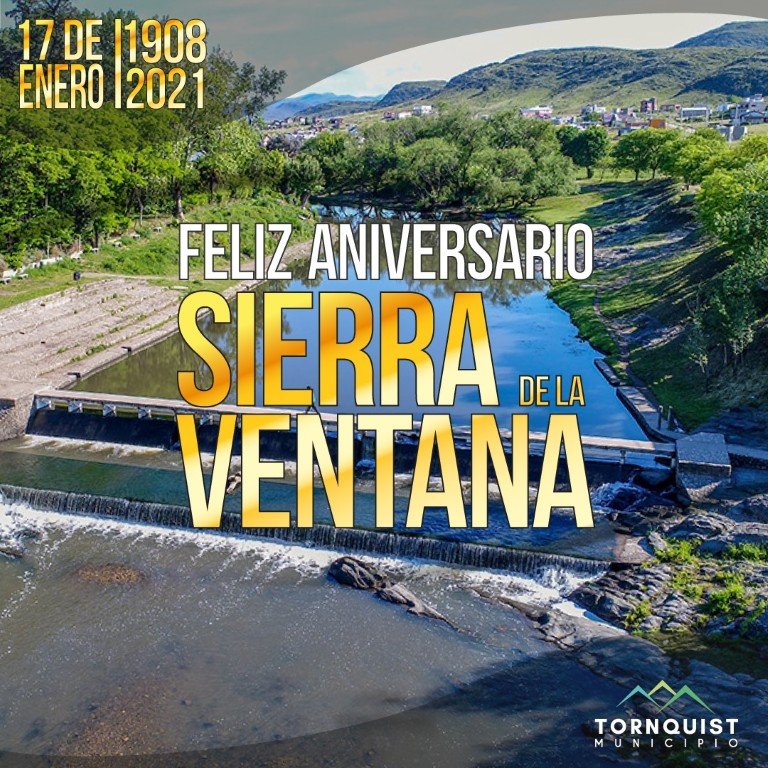 Con motivo de celebrarse el 113 aniversario de la localidad de Sierra de la Ventana, el intendente municipal Sergio Bordoni y su equipo de trabajo, saludan, en esta fecha especial, a los vecinos que la habitan.