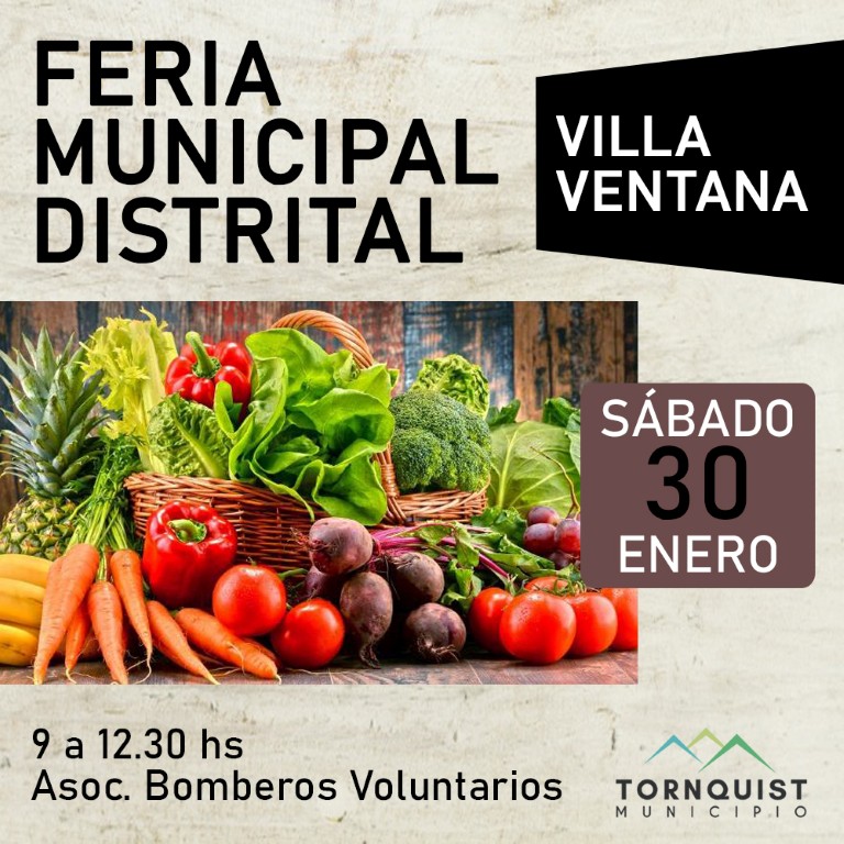 El próximo sábado 30 de enero, la Feria Municipal Distrital, organizada por la Secretaría de Producción, Comercio e Industria de Tornquist Municipio, se llevará a cabo en Villa Ventana.