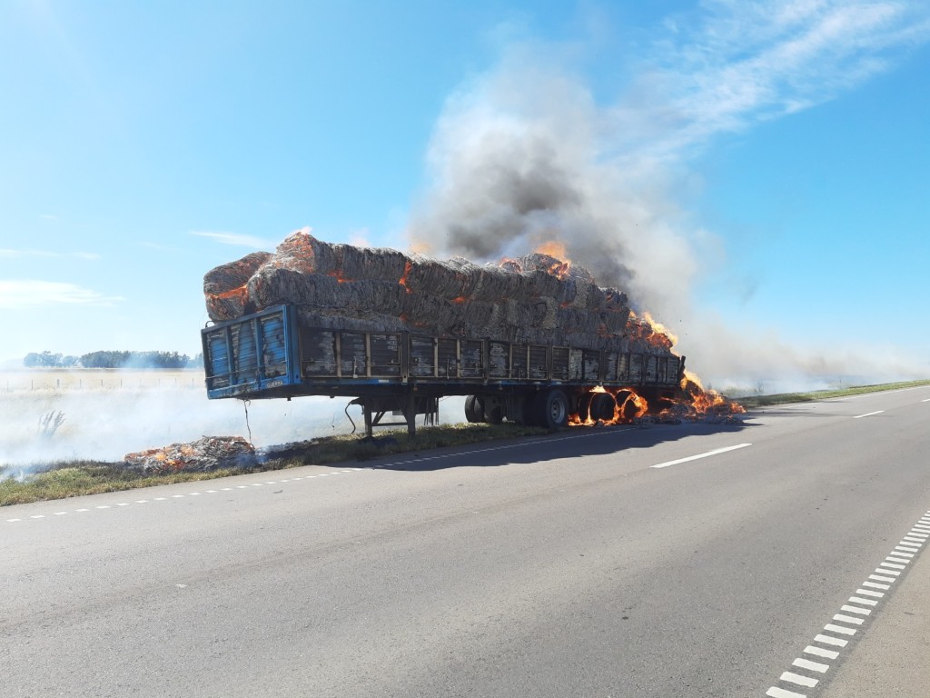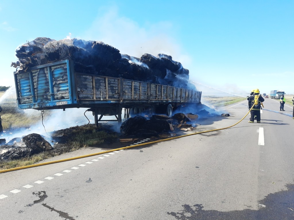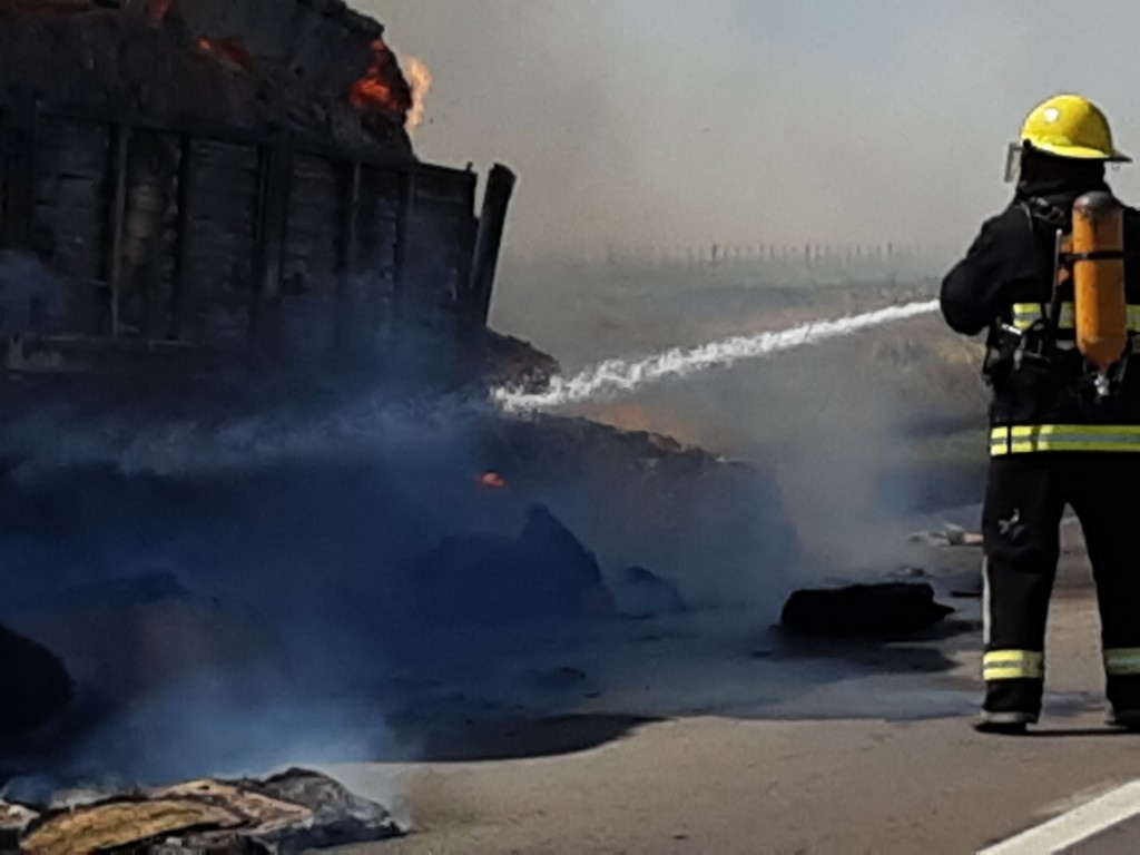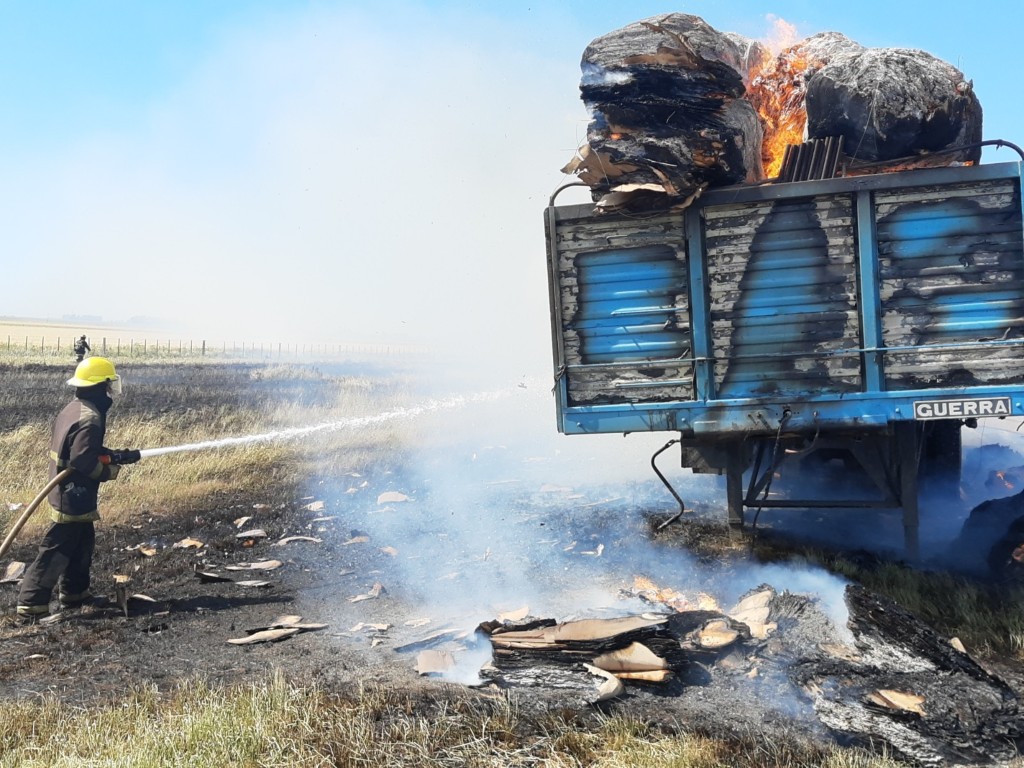 Esta mañana alrededor de las 9:30 hs se escuchó la sirena de los Bomberos Voluntarios quienes asistieron al incendio de la carga de un camión que transportaba fardos de cartón desde Puerto Madryn con destino a la fábrica Interpack.